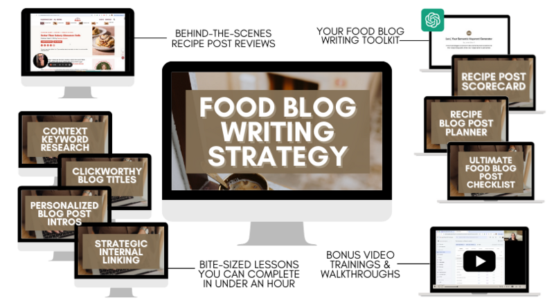 The Food Blog Writing Strategy shows you how to break free from blog post templates so you can write better recipe blog posts that rank higher and get more clicks without overcomplicating SEO.